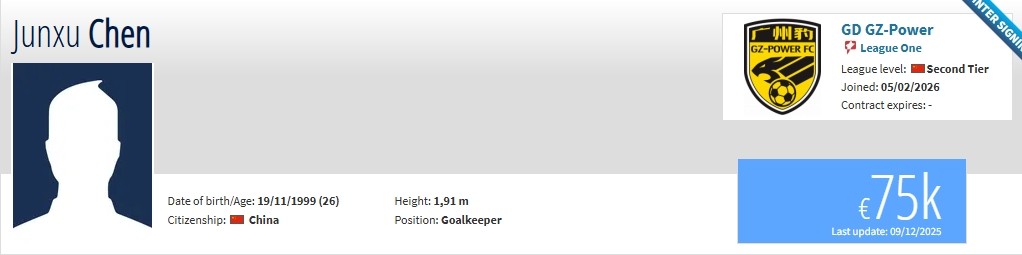 北京时间2月5日,德转更新,原梅州客家队长廖均健、原陕西联合门将陈俊旭加盟广东广州豹。