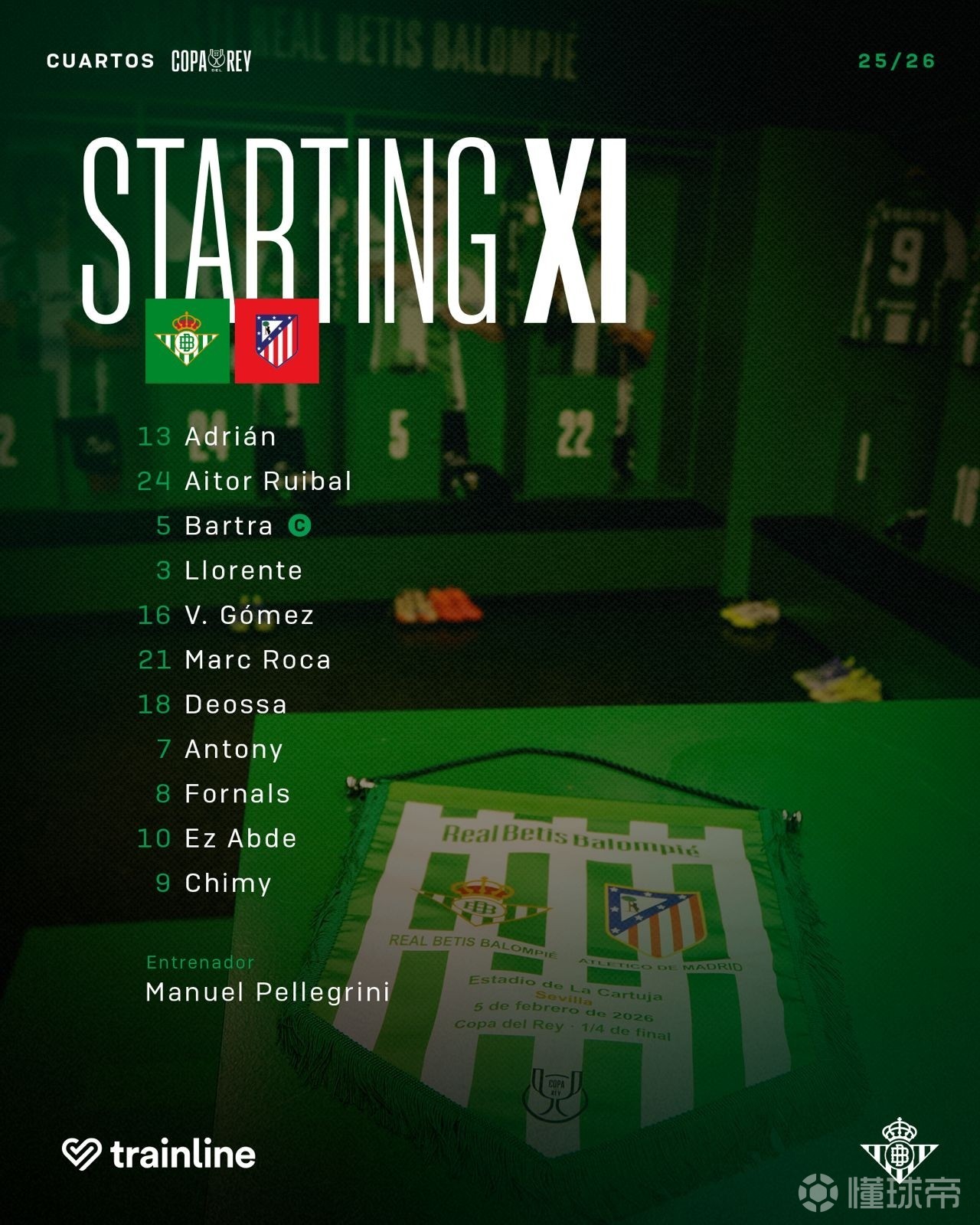 北京时间2月6号凌晨4点,西班牙国王杯1/4决赛展开一场焦点战役,马竞对阵贝蒂斯。赛前,双方公布首发阵容。