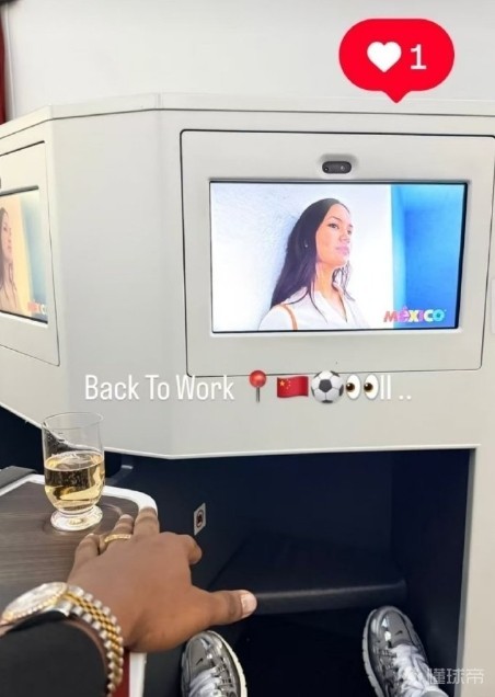 帕拉西奥斯晒出乘机照,并配文:回去工作,并附带中国国旗和足球的图标。
